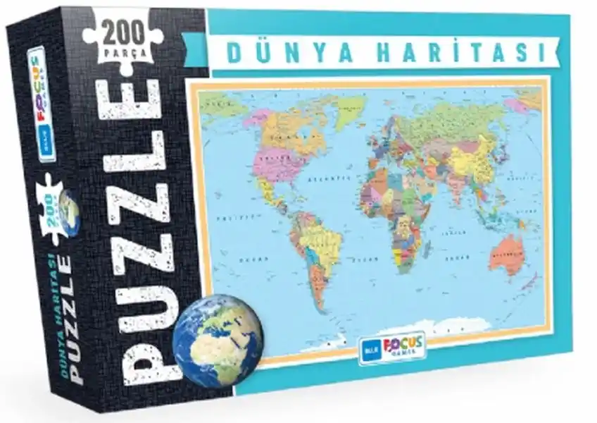 Ürün Adı: Blue Focus Dünya Haritası - Puzzle 200 Parça