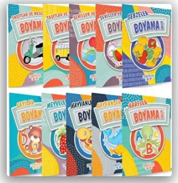 • Hayvanlar-1/ Boyama Kitabı • Hayvanlar-2 / Boyama Kitabı • Taşıtlar ve Meslekler 1 / Boyama Kitabı • Taşıtlar ve Meslekler 2 / Boyama Kitabı • Şekiller ve Renkler 1 / Boyama Kitabı • Şekiller ve Renkler 2 / Boyama Kitabı • Meyveler / Boyama Kitabı • Sebzeler/ Boyama Kitabı • Sayılar/ Boyama Kitabı • Harfler / Boyama Kitabı