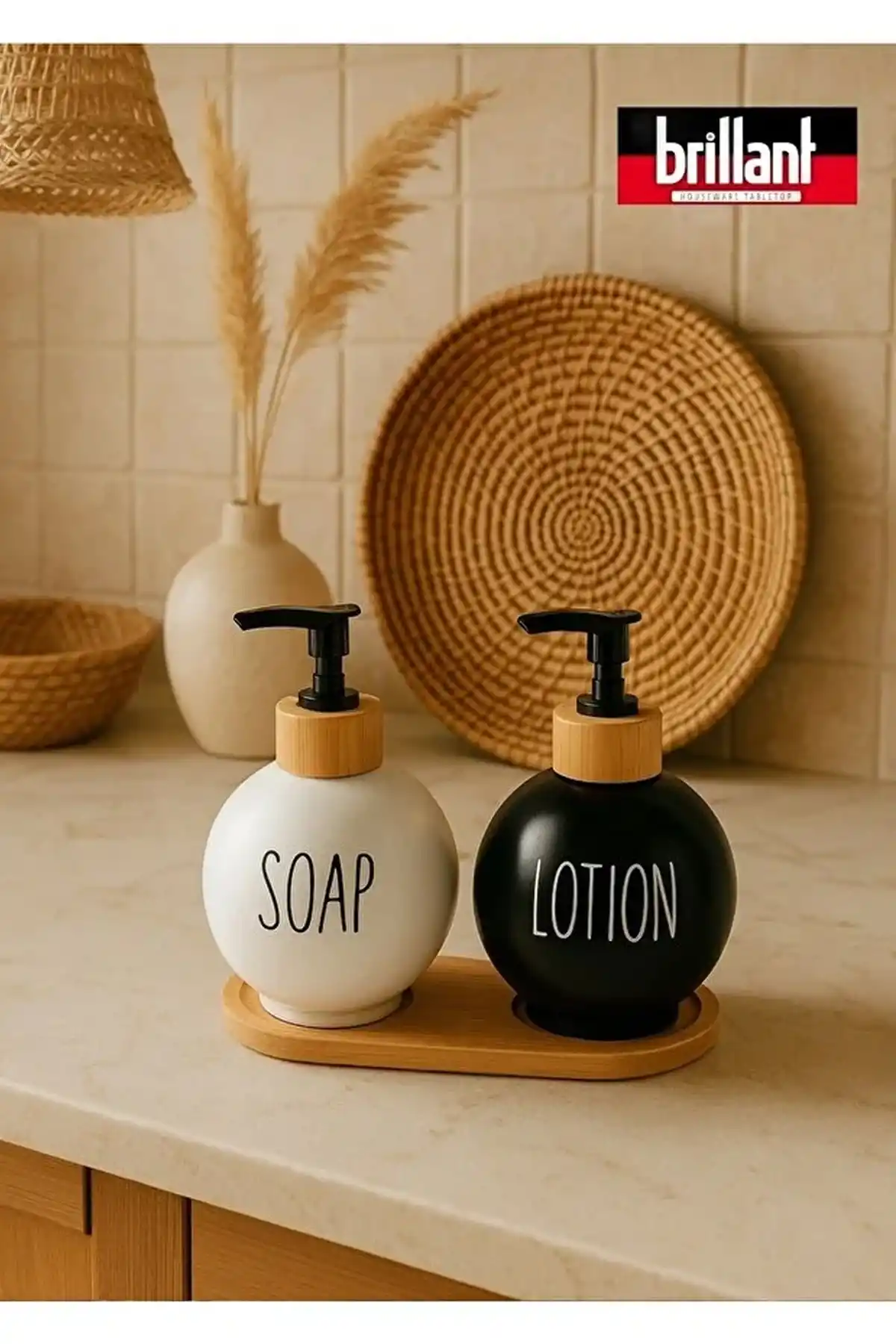 Brillant Bambu Standlı Lüks Sıvı Sabunluk 2'li 500 ml Siyah-Beyaz
