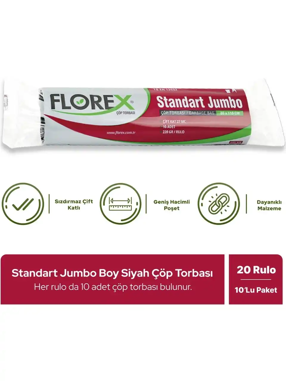 Florex Standart Jumbo Çöp Poşeti 80x110 cm 10'lu