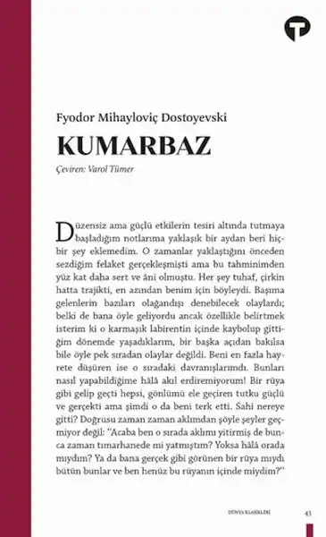 Kumarbaz tutkunun, saplantının, çaresizliğin ve aşkın kıskacındaki insanın en karanlık yönlerine ustaca ışık tutan bir Dostoyevski romanı.