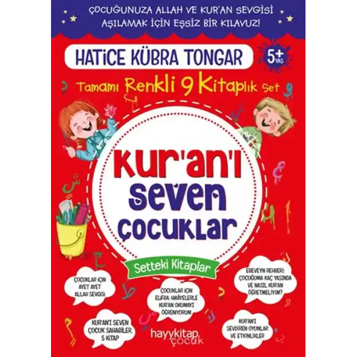 9 kitaptan oluşan Kur’an’ı Seven Çocuklar Seti, çocuklarımızın hayat kitabımız Kur’an’la tanışıklığına sevgi tohumları ekiyor. İçeriğindeki hikâyeler, öyküler, oyunlar ve etkinliklerle çocuk dünyasının kapısını ayet ayet tıklatıyor, sure sure yeşertiyor.