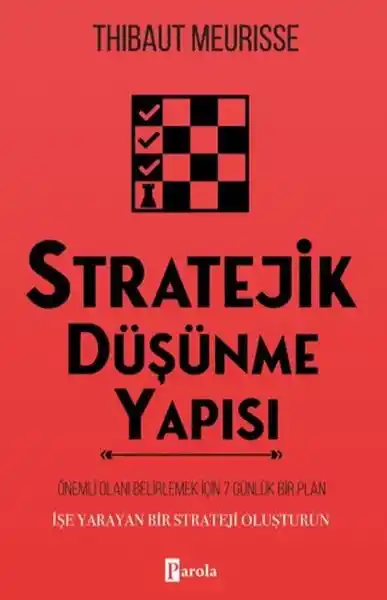 Çabalayıp durmanıza rağmen ortada kayda değer bir sonuç göremiyor musunuz?Etkili bir strateji olmadan verimliliğin bir anlamı yoktur.Bu yüzden stratejik düşünmeyi takıntı hâline getirmeliyiz. Doğru düşünme yapısıyla, yıllardan tasarruf edebilir ve normalde ulaşabileceğiniz hedeflerden çok daha fazlasını gerçekleştirebilirsiniz. Stratejik Düşünme Yapısı’nda, ne istediğiniz konusunda netlik kazanmayı ve hedeflerinize ulaşmak için son derece etkili stratejiler belirlemeyi öğreneceksiniz. Daha ayrıntılı ifade etmek gerekirse, Stratejik Düşünme Yapısı’nda:• Ne istediğinizi tam olarak belirlemenize yardımcı olacak 15 güçlü soruyu• Her gün gerçekten etkili olmayı• Her eyleminizden maksimum fayda alabilmek için düşünme yapınızı geliştirmeyi• Doğru bilgiyi bulmayı ve onu mümkün olan en hızlı ve etkili şekilde özümsemeyi• Daha az zamanda daha fazla başarıya ulaşmak için enerjinizi iyi bir şekilde yönetmeyi ve çok daha fazlasını keşfedeceksiniz.Stratejik Düşünme Yapısı, harika bir stratejist olmak ve daha azını yaparak daha fazla başarıya ulaşmak için okumanız ve uygulamanız gereken bir rehberdir. Eğer kolay anlaşılır stratejilerden, pratik alıştırmalardan, net ve yalın öğretme tarzından hoşlanıyorsanız, bu kitaba bayılacaksınız.